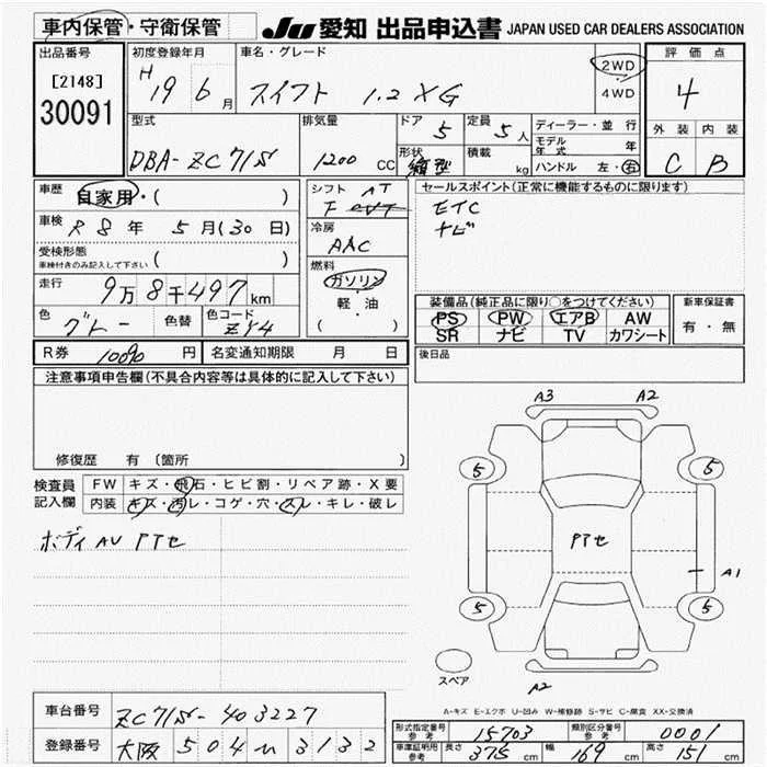 Suzuki SWIFT с аукциона Японии JU Aichi лот № 30091