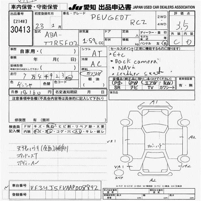Peugeot RCZ с аукциона Японии JU Aichi лот № 30413