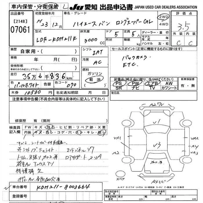 Toyota HIACE VAN с аукциона Японии JU Aichi лот № 7061
