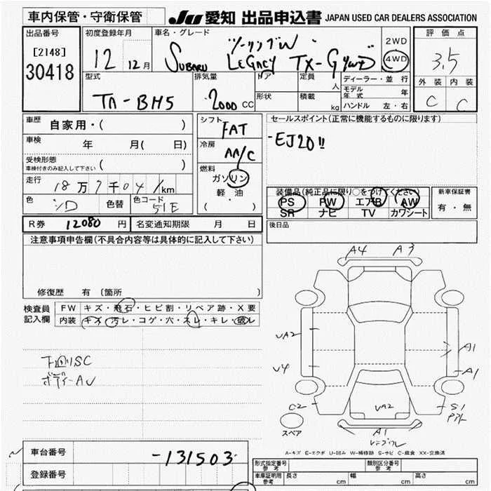 Subaru LEGACY с аукциона Японии JU Aichi лот № 30418
