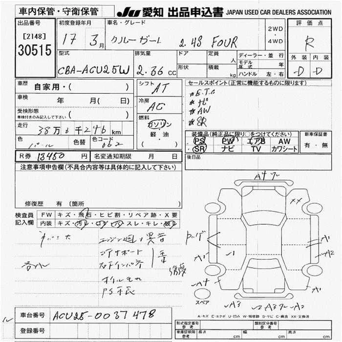 Toyota KLUGER с аукциона Японии JU Aichi лот № 30515