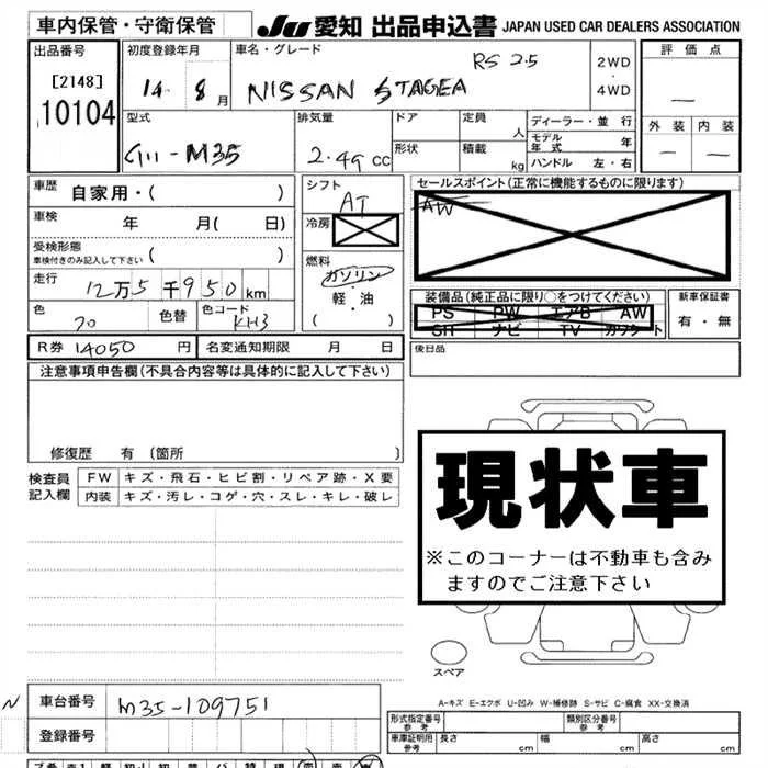 Nissan STAGEA с аукциона Японии JU Aichi лот № 10104