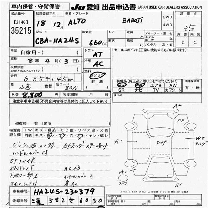 Suzuki ALTO с аукциона Японии JU Aichi лот № 35215