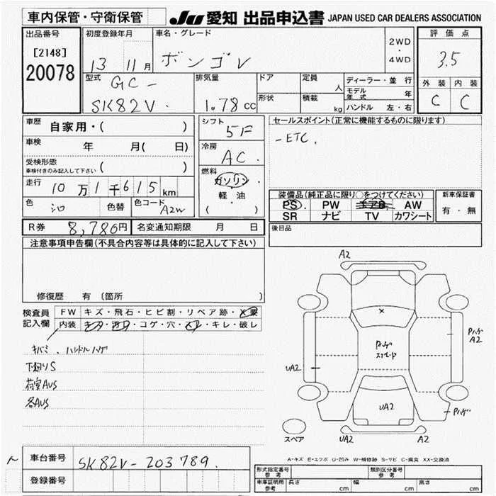 Mazda BONGO VAN с аукциона Японии JU Aichi лот № 20078