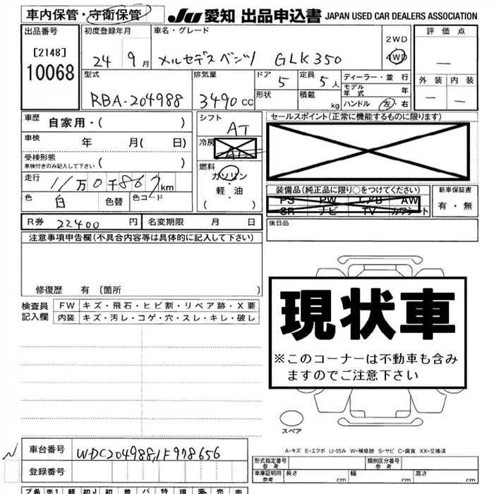 Mercedes-Benz GLK CLASS с аукциона Японии JU Aichi лот № 10068