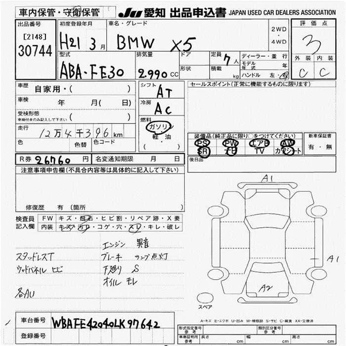 BMW X5 SERIES с аукциона Японии JU Aichi лот № 30744