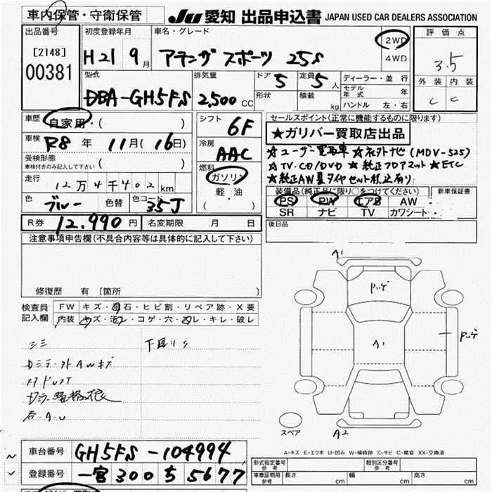 Mazda ATENZA SPORT с аукциона Японии JU Aichi лот № 381