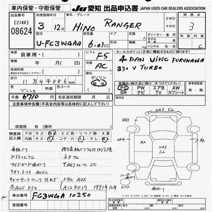 Hino RANGER с аукциона Японии JU Aichi лот № 8624