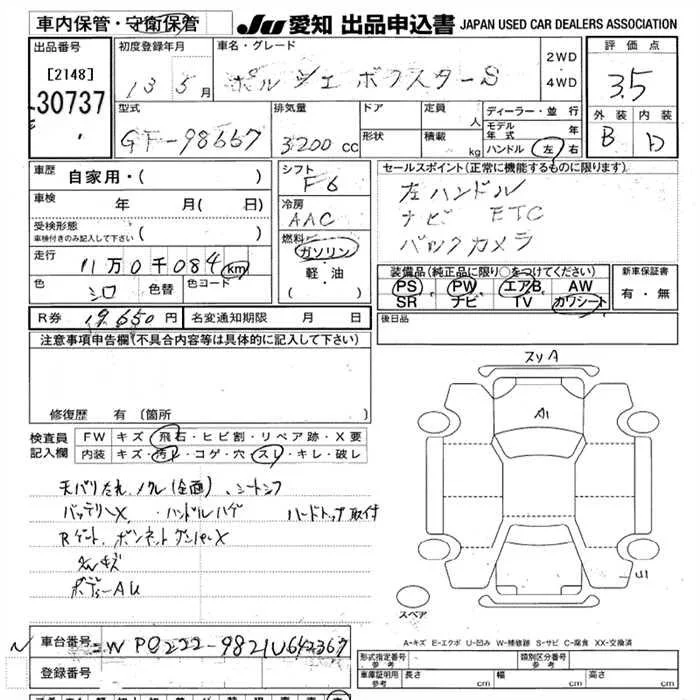 Porsche Boxster с аукциона Японии JU Aichi лот № 30737