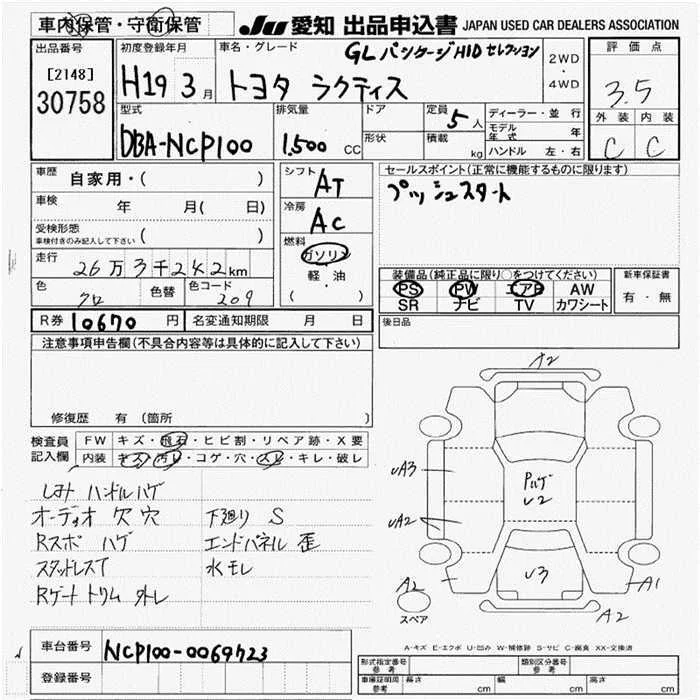 Toyota RACTIS с аукциона Японии JU Aichi лот № 30758