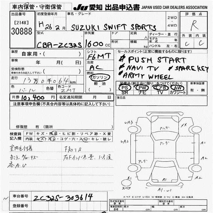 Suzuki SWIFT с аукциона Японии JU Aichi лот № 30888