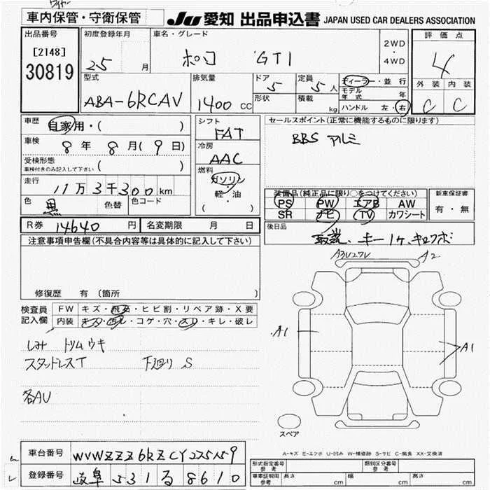 Volkswagen POLO с аукциона Японии JU Aichi лот № 30819