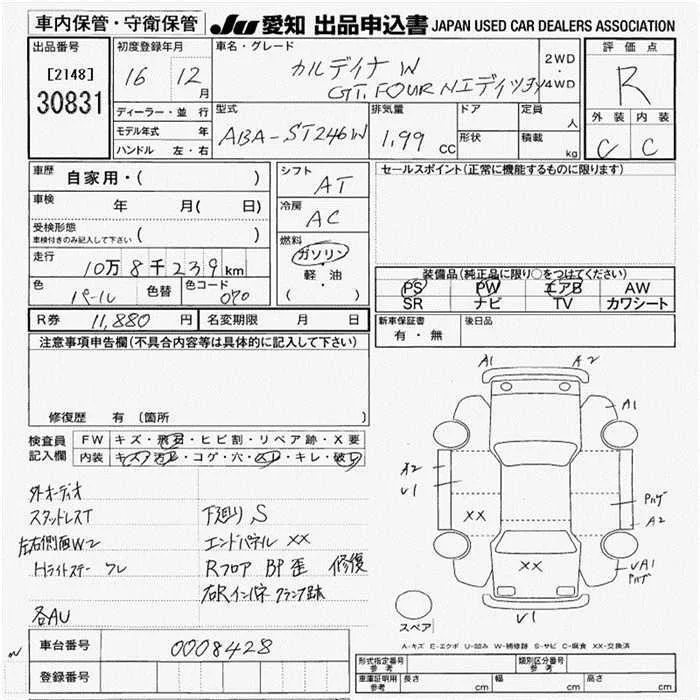 Toyota CALDINA с аукциона Японии JU Aichi лот № 30831