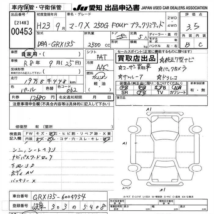 Toyota MARK X с аукциона Японии JU Aichi лот № 453