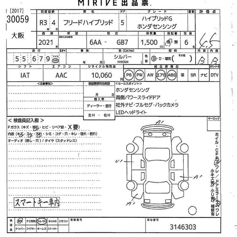 Honda FREED с аукциона Японии MIRIVE Osaka лот № 30059