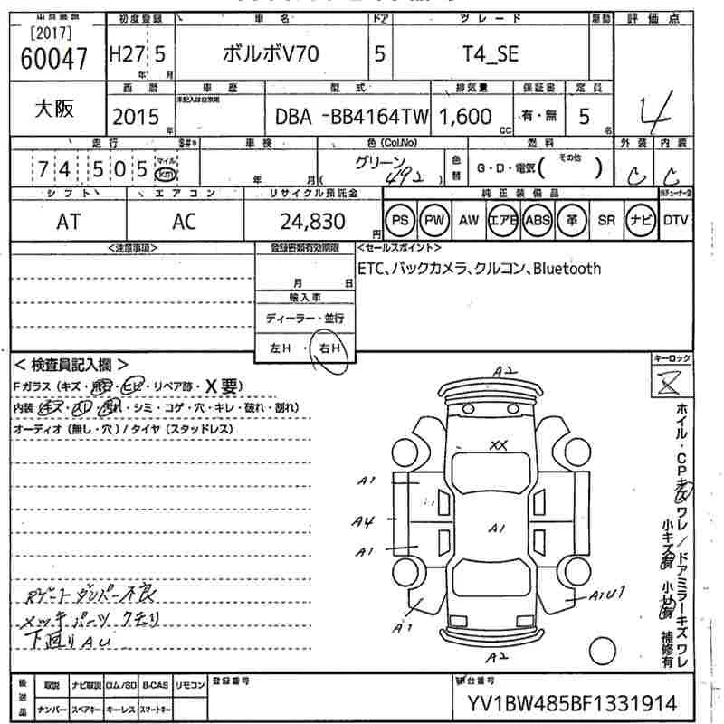 Volvo V70 с аукциона Японии MIRIVE Osaka лот № 60047