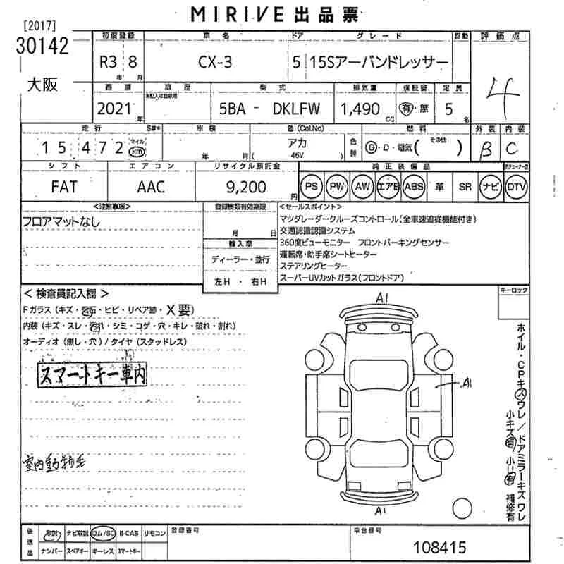 Mazda CX-3 с аукциона Японии MIRIVE Osaka лот № 30142