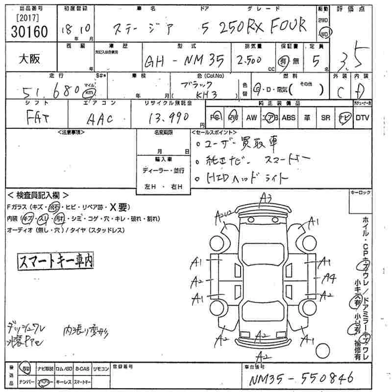 Nissan STAGEA с аукциона Японии MIRIVE Osaka лот № 30160