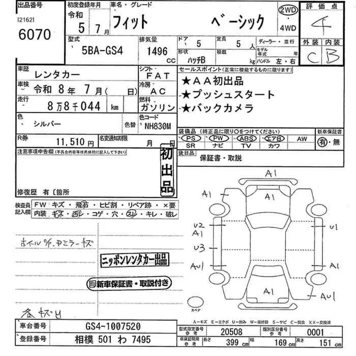 Honda FIT с аукциона Японии JU Kanagawa лот № 6070
