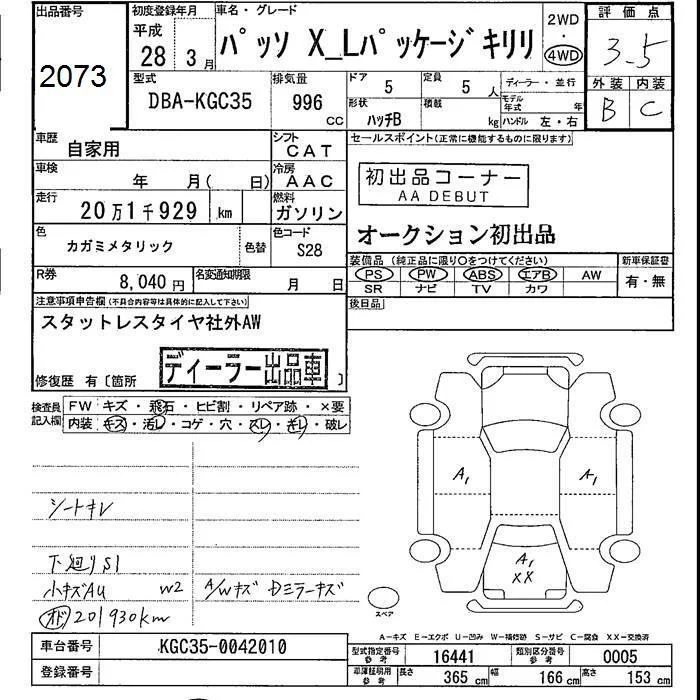 Toyota PASSO с аукциона Японии JU Fukushima лот № 2073