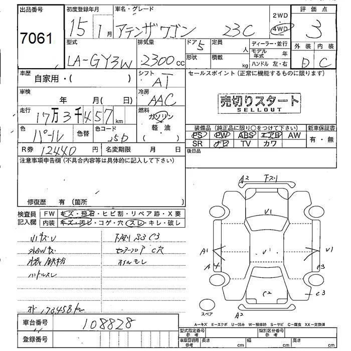 Mazda ATENZA WAGON с аукциона Японии JU Fukushima лот № 7061
