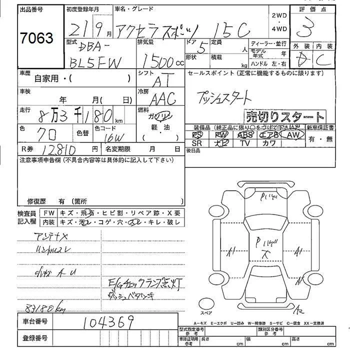 Mazda AXELA с аукциона Японии JU Fukushima лот № 7063