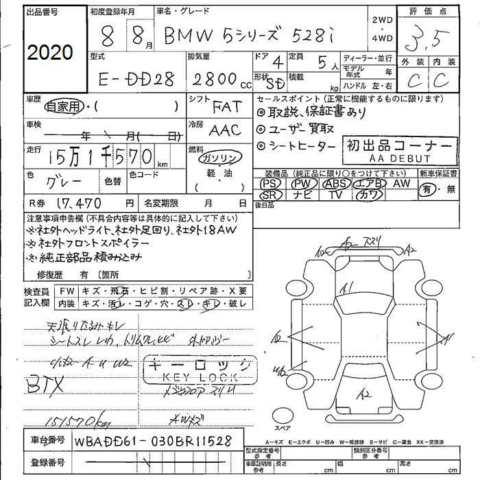 BMW 5-Series с аукциона Японии JU Fukushima лот № 2020