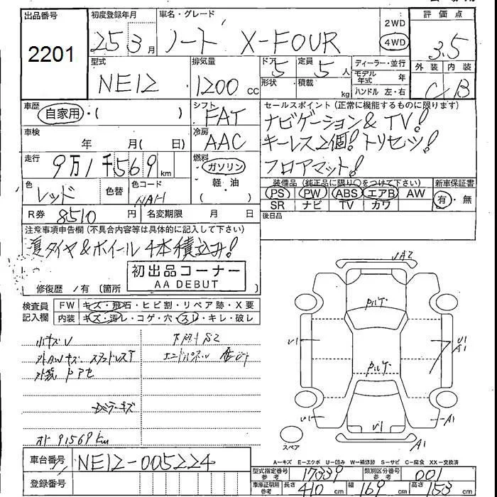Nissan NOTE с аукциона Японии JU Fukushima лот № 2201