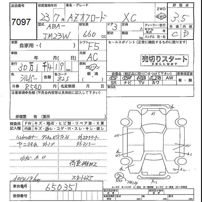 Mazda AZ-OFFROAD с аукциона Японии JU Fukushima лот № 7097