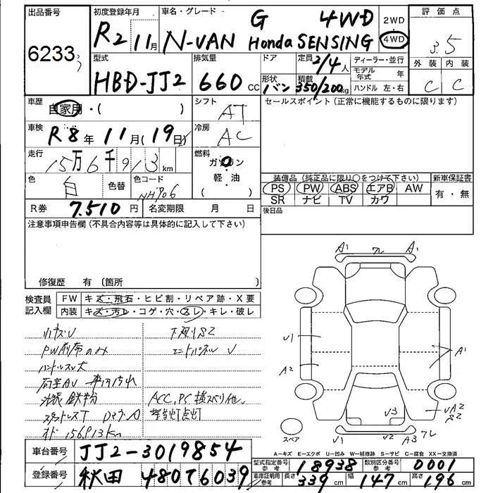 Honda N VAN с аукциона Японии JU Fukushima лот № 6233