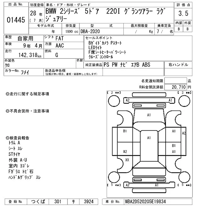 BMW 2-Series с аукциона Японии ARAI Oyama лот № 1445