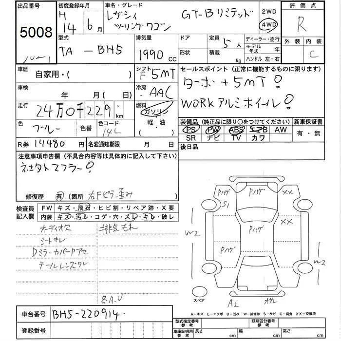 Subaru LEGACY с аукциона Японии JU Toyama лот № 5008
