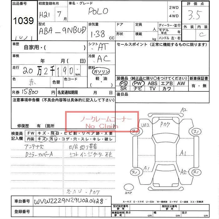 Volkswagen POLO с аукциона Японии JU Toyama лот № 1039