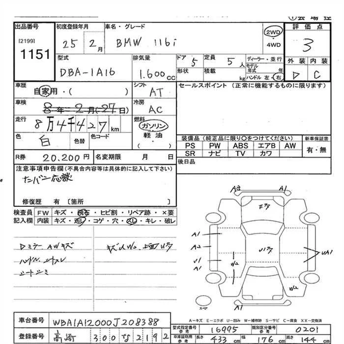 BMW 1-Series с аукциона Японии JU Gunma лот № 1151