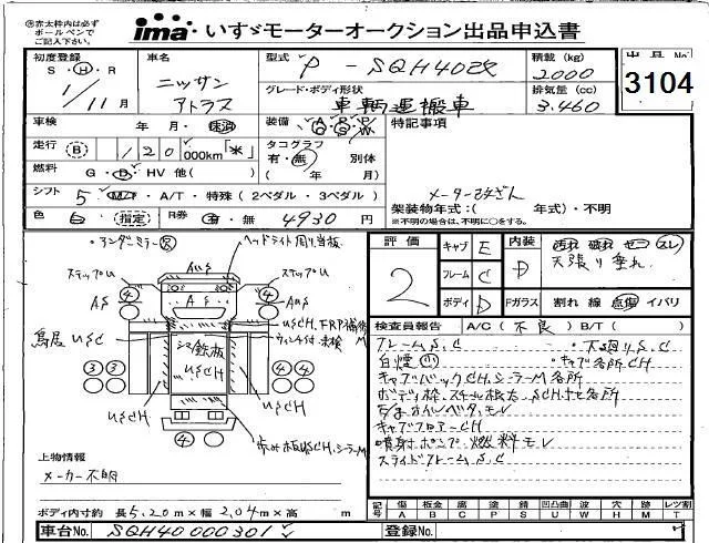 Nissan ATLAS с аукциона Японии Isuzu Kyushu лот № 3104