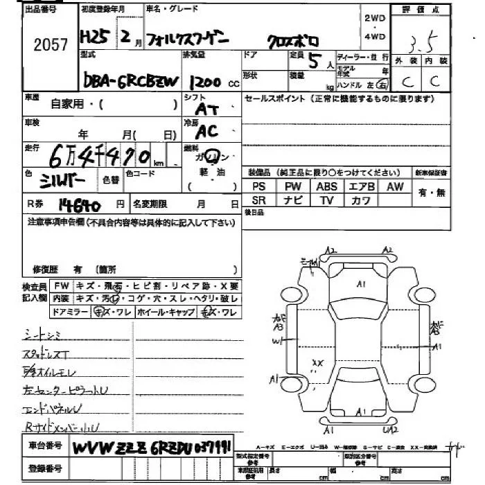 Volkswagen CROSS POLO с аукциона Японии JU Hiroshima лот № 2057