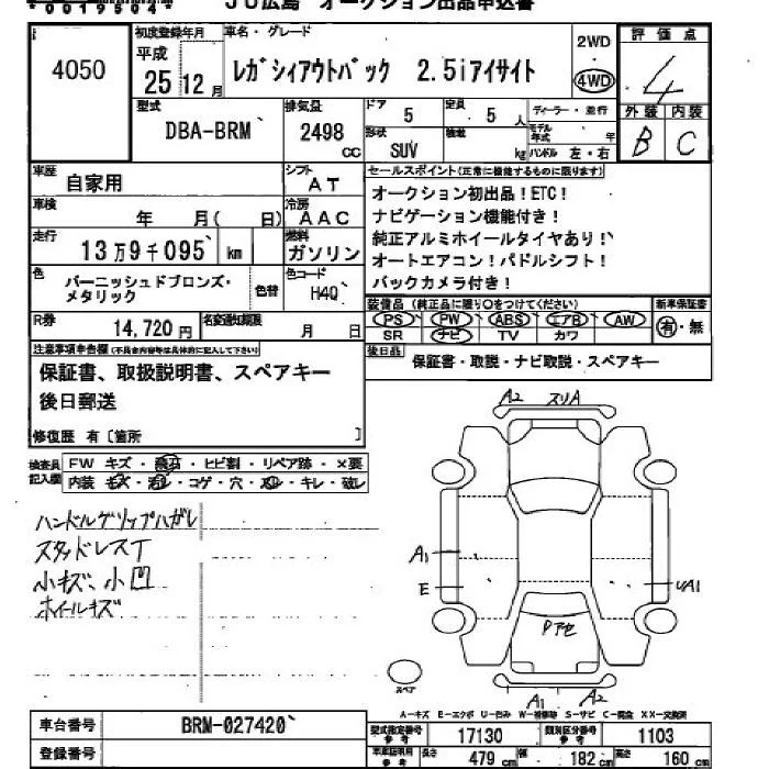 Subaru LEGACY OUTBACK с аукциона Японии JU Hiroshima лот № 4050