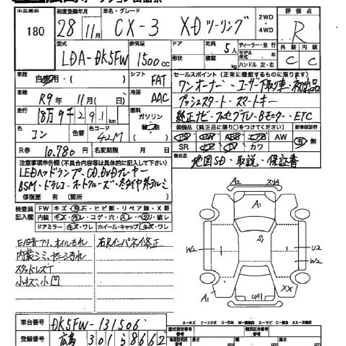 Mazda CX-3 с аукциона Японии JU Hiroshima лот № 180