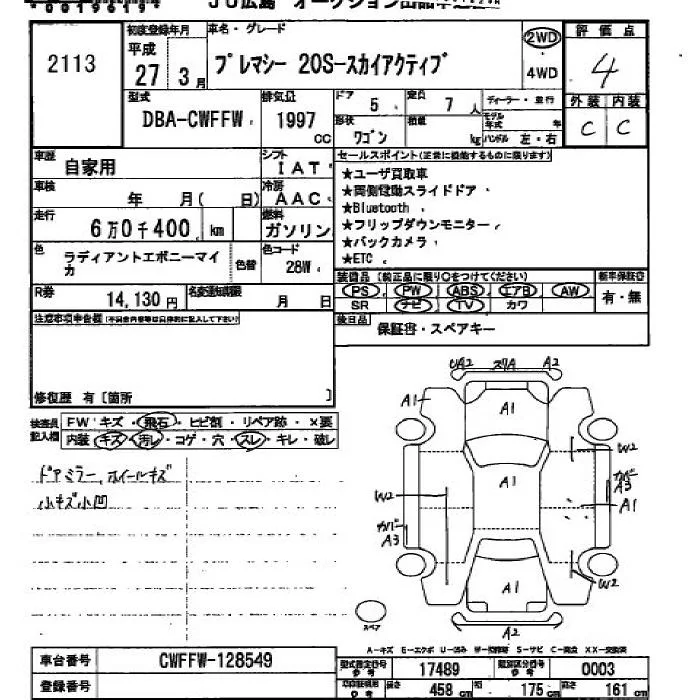 Mazda PREMACY с аукциона Японии JU Hiroshima лот № 2113