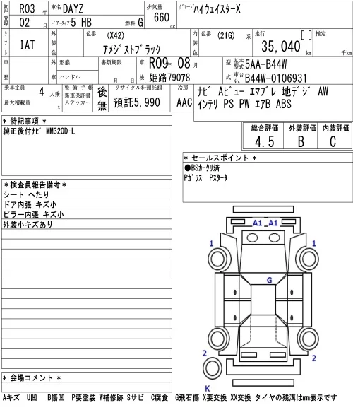 Nissan DAYZ с аукциона Японии NAA Osaka лот № 3002