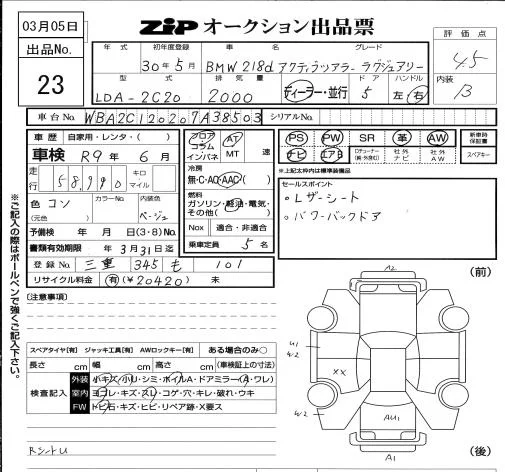 BMW 2-Series с аукциона Японии ZIP Osaka лот № 23