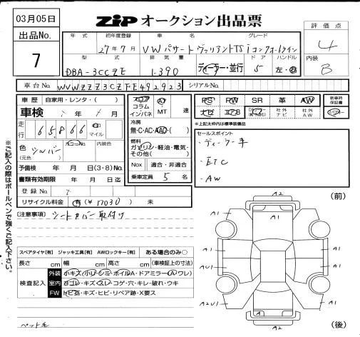 Volkswagen PASSAT VARIANT с аукциона Японии ZIP Osaka лот № 7