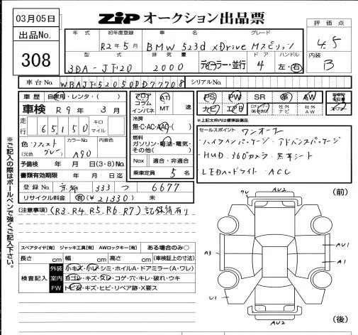 BMW 5-Series с аукциона Японии ZIP Osaka лот № 308