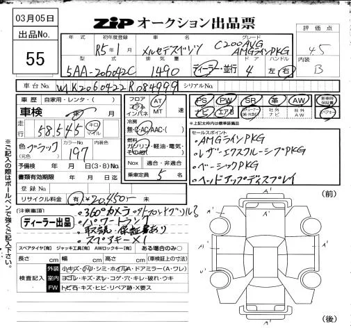 Mercedes-Benz C CLASS с аукциона Японии ZIP Osaka лот № 55