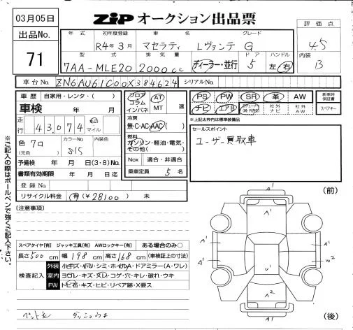 Maserati LEVANTE с аукциона Японии ZIP Osaka лот № 71