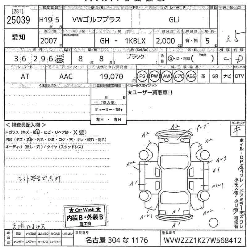 Volkswagen GOLF PLUS с аукциона Японии MIRIVE Aichi лот № 25039