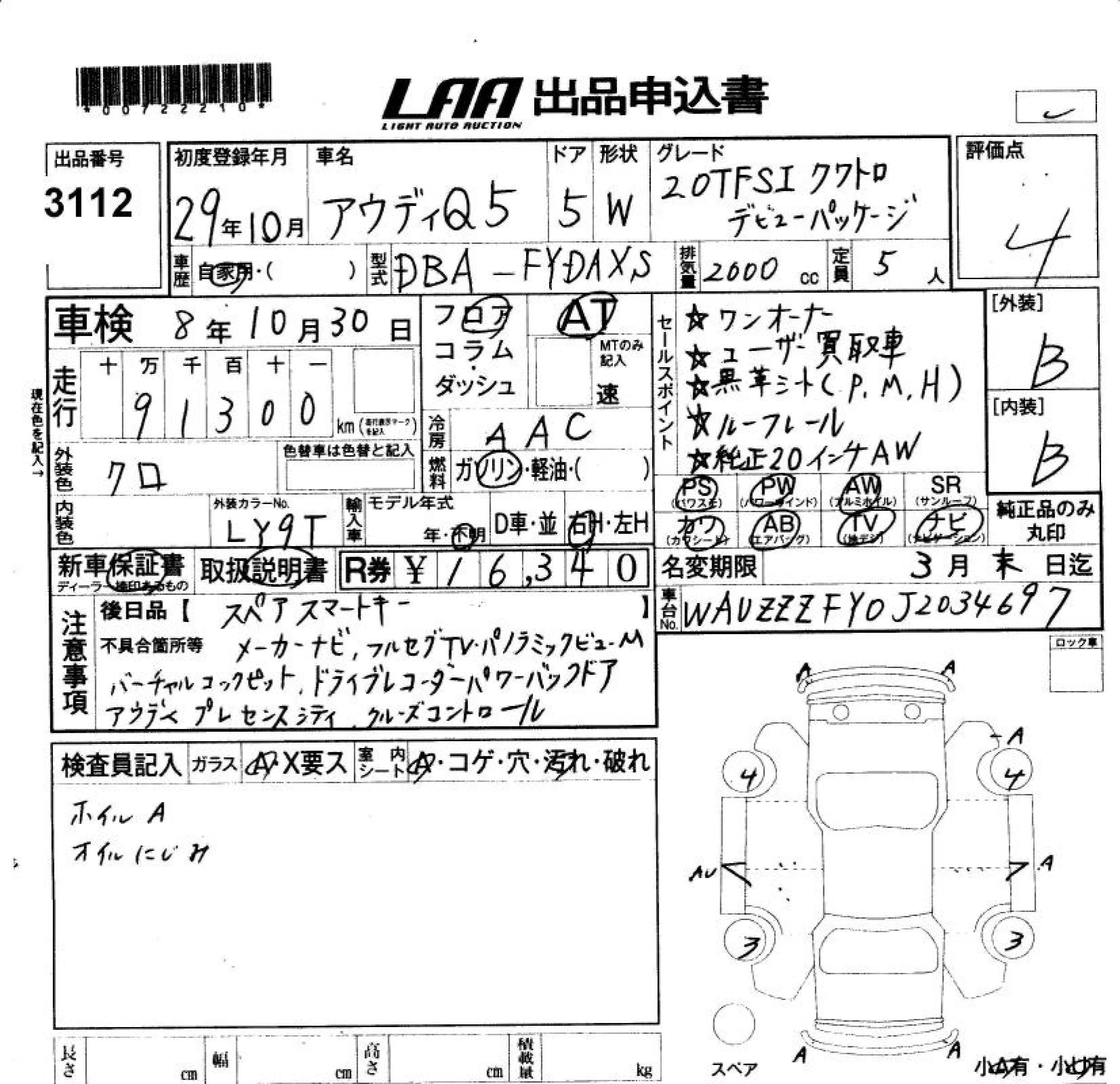 Audi Q5 с аукциона Японии LAA Okayama лот № 3112