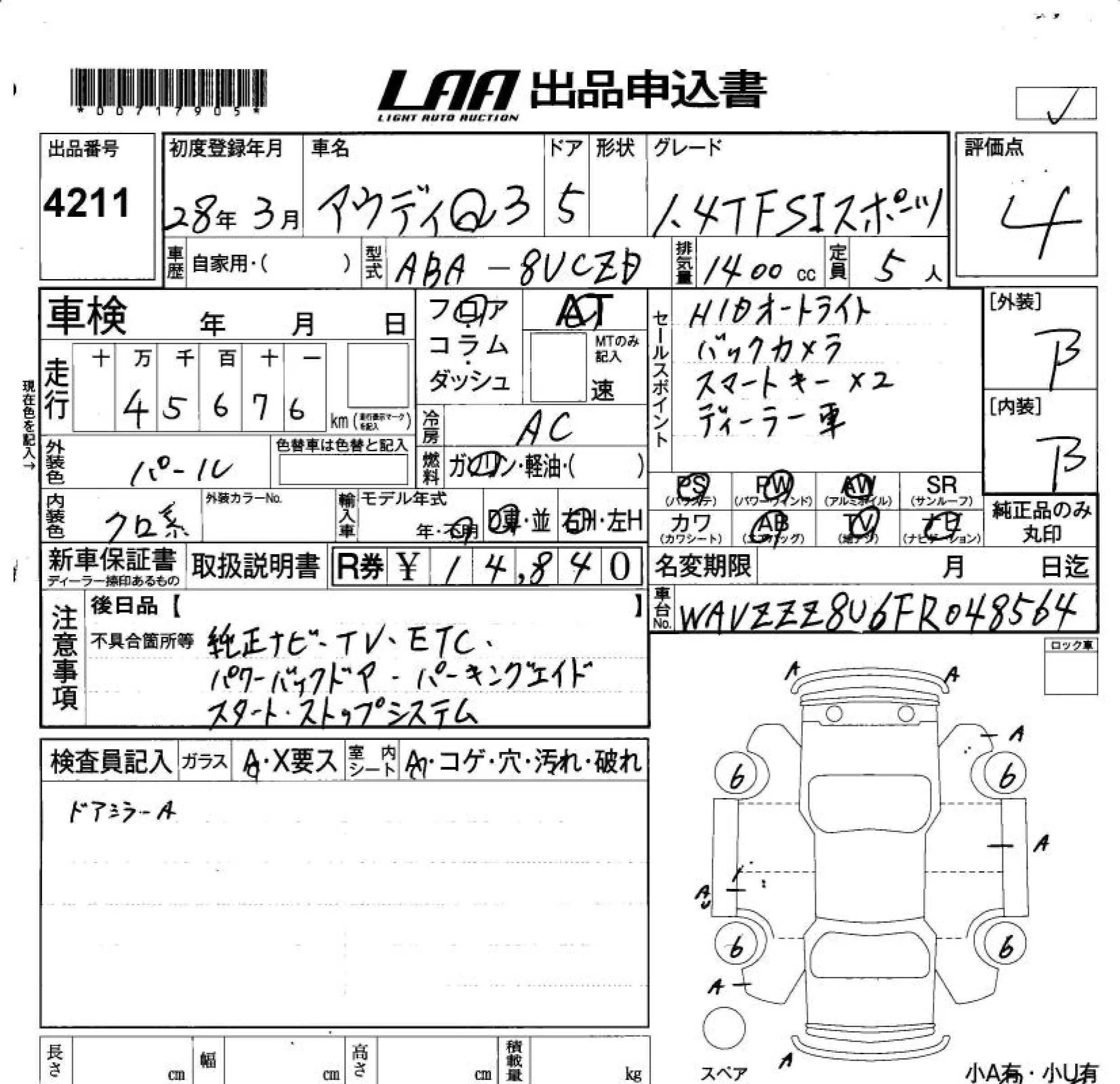 Audi Q3 с аукциона Японии LAA Okayama лот № 4211