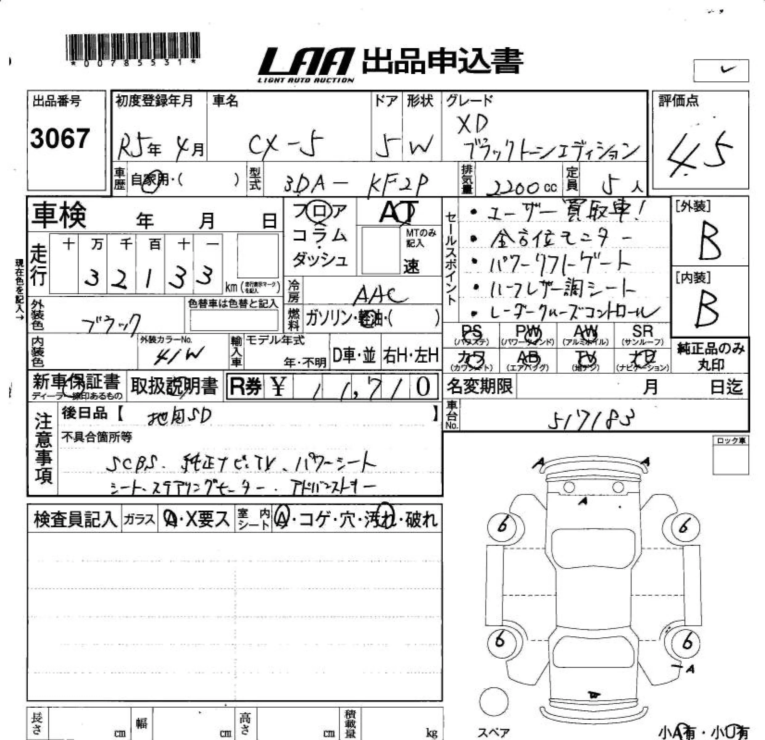 Mazda CX-5 с аукциона Японии LAA Okayama лот № 3067