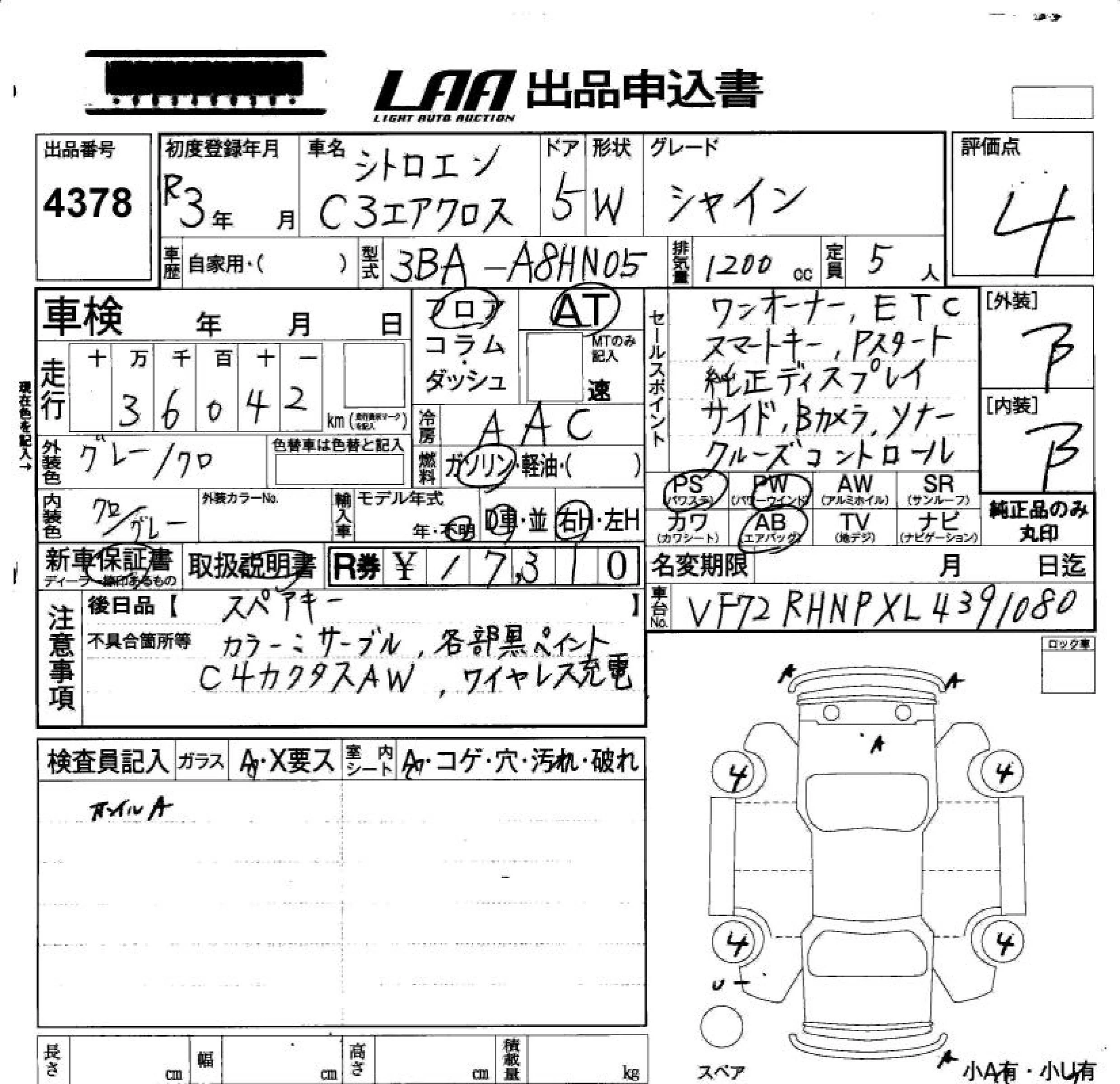 Citroen C3 с аукциона Японии LAA Okayama лот № 4378